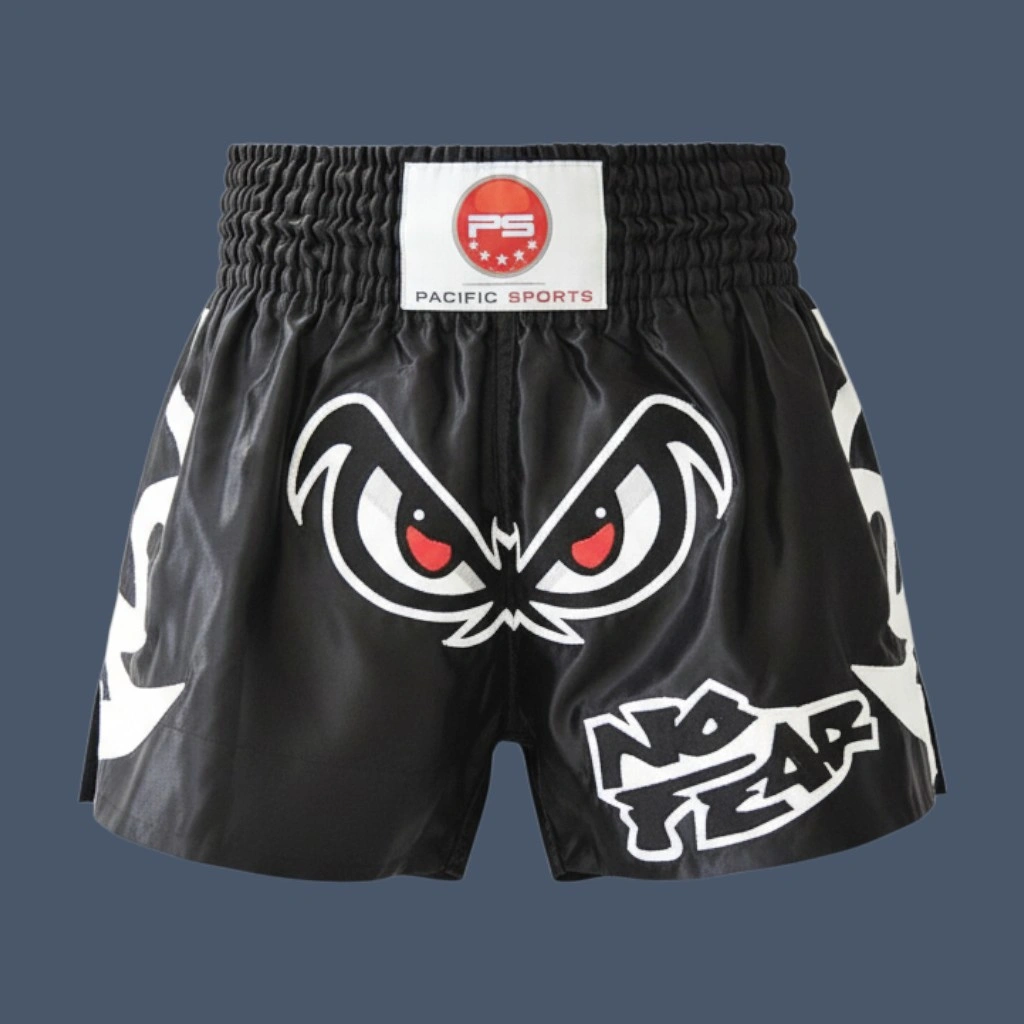 3. Attractive Eye Design: The eye-catching design on the shorts, featuring a striking eye motif and the “No Fear” lettering, adds a touch of style and personality to your training attire, making a bold statement in the gym or ring.