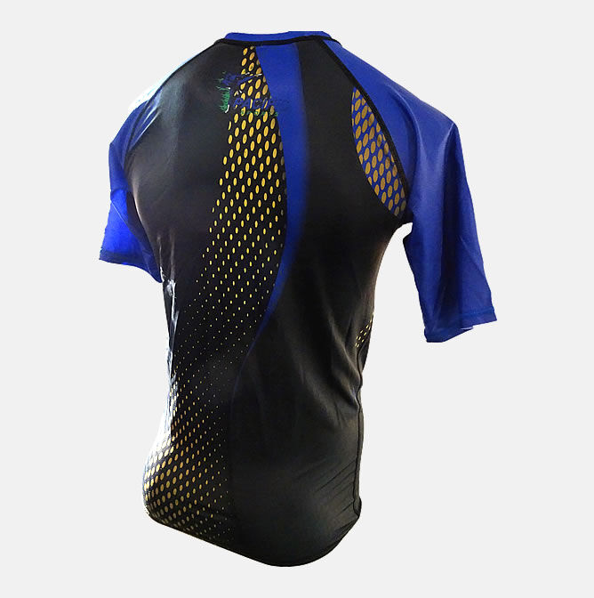 —Pacific Sports rash guards are versatile as you can wear it as a training top for a no-gi session, or even wear it under a gi. They are also lightweight, colourful and stylish. The design is sublimated so that it does not fade or peel away. The fabric is a blend of polyester and Spandex, which makes it extremely durable and will last a very long time.
